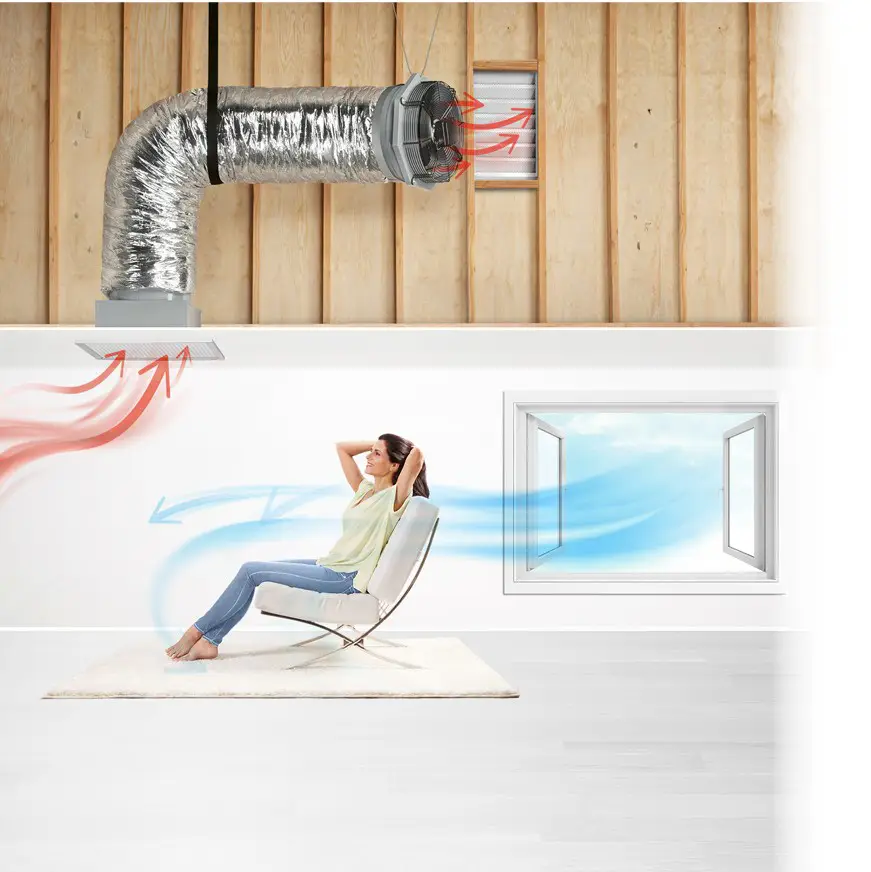 - Pushes out hot, stale indoor air for a fresher, more comfortable home